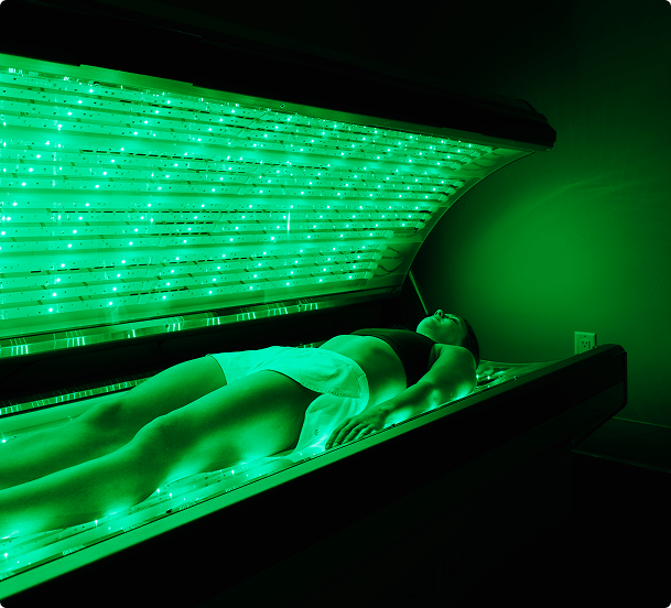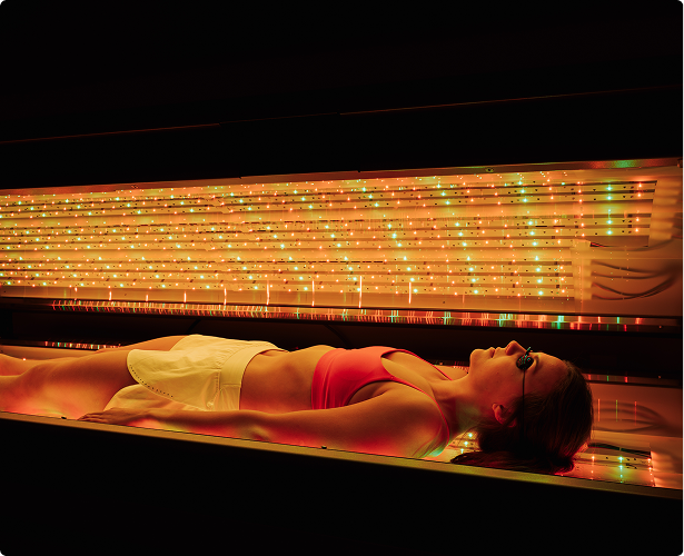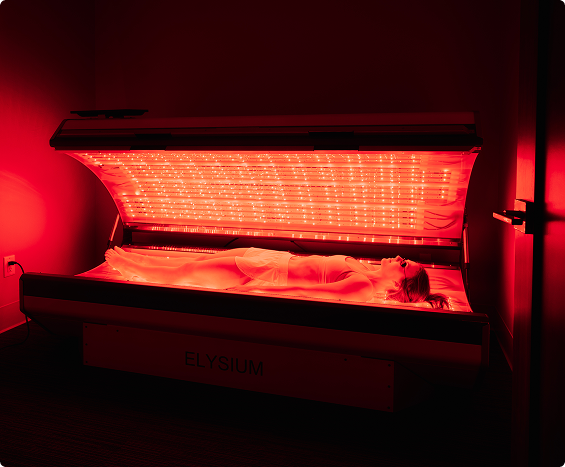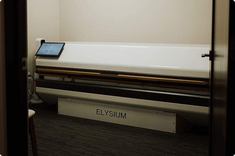 bed-after your scan is completed your technician will escort you into the light therapy bed room where the Elysium computer will be programmed specifically to your settings for treatment. You will disrobe after the technician leaves the room, and get into the ARRC (Advanced Recovery and Rejuvenation Chamber) for about a 20 minute session.