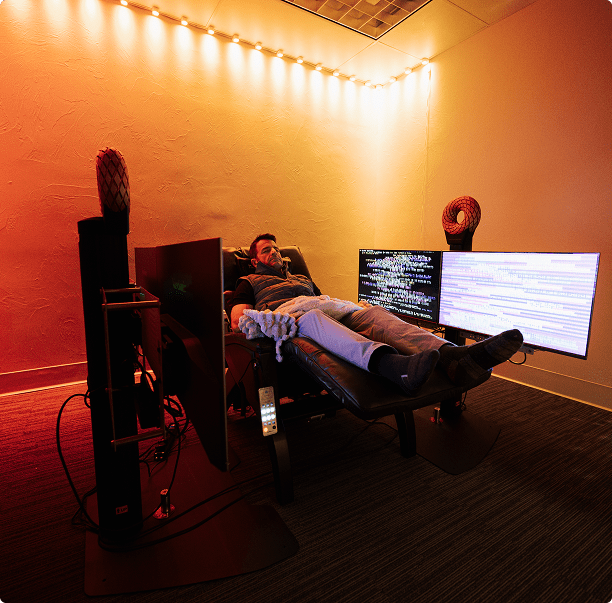 Soft ambient music plays as the scalar field surrounds you. Many guests drift into a meditative state or fall asleep. You may also choose to read a book, or just slip into a state of relaxation.